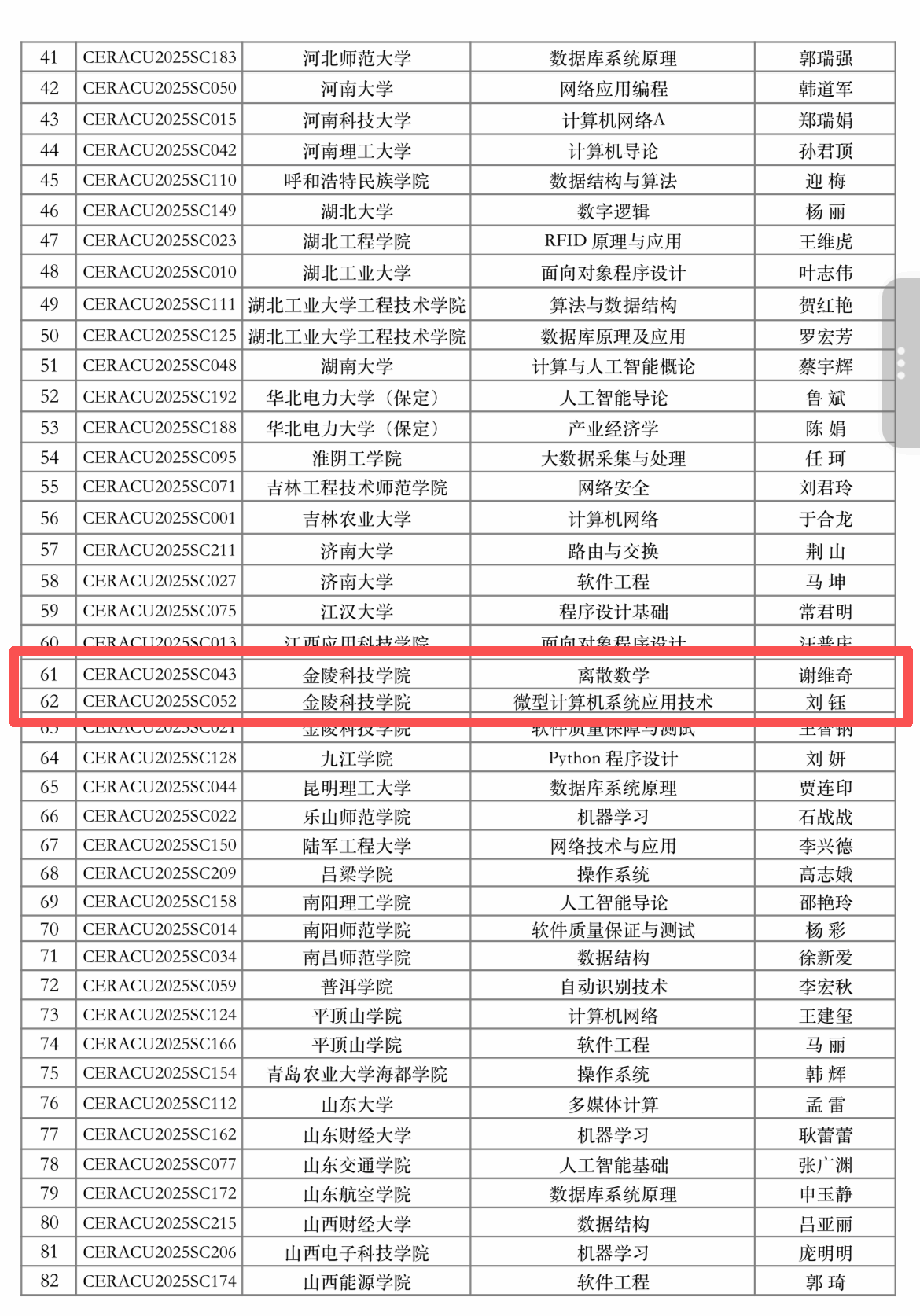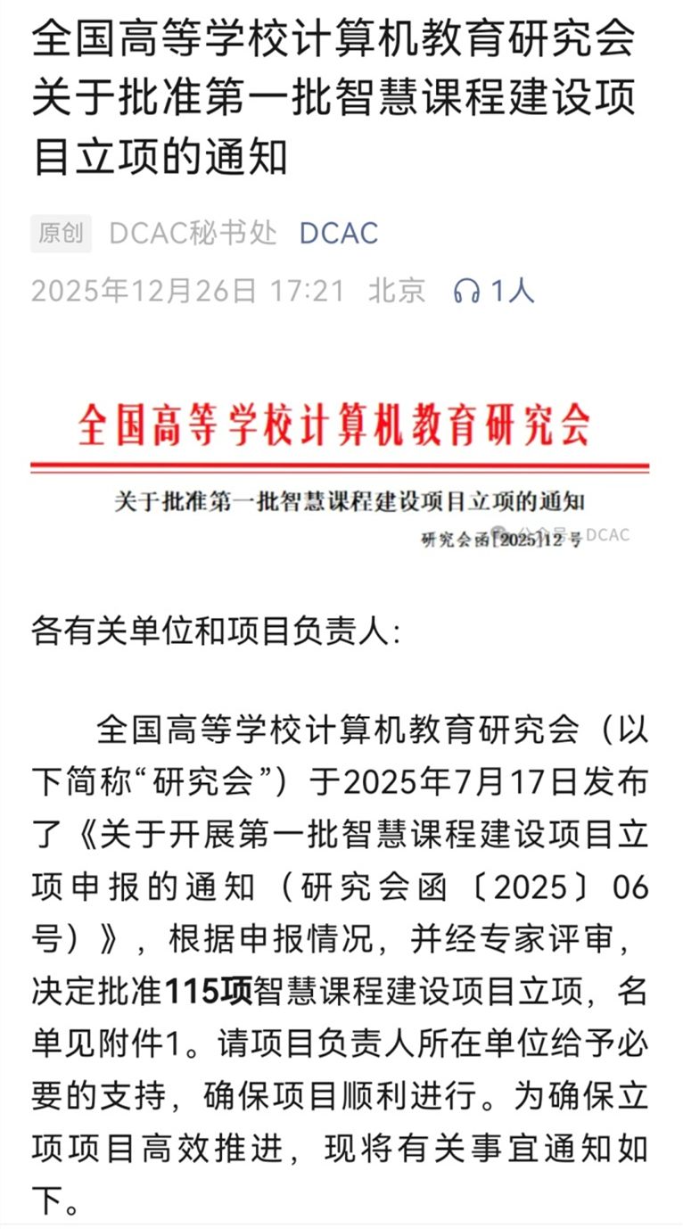 近日,全国高等学校计算机教育研究会公布了第一批智慧课程建设项目立项名单。我校计算机工程学院申报的《离散数学》(项目负责人:谢维奇)与《微型计算机系统应用技术》(项目负责人:刘钰)成功入选。此次全国仅立项115项,我院一举获得两项,标志着学院在课程智能化建设与教学改革方面走在了全国前列。